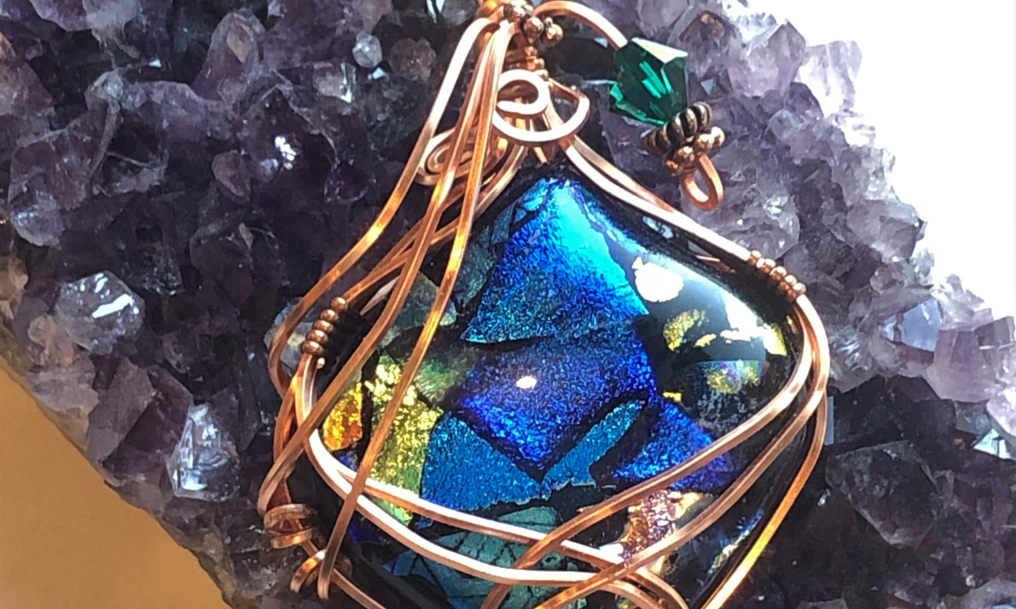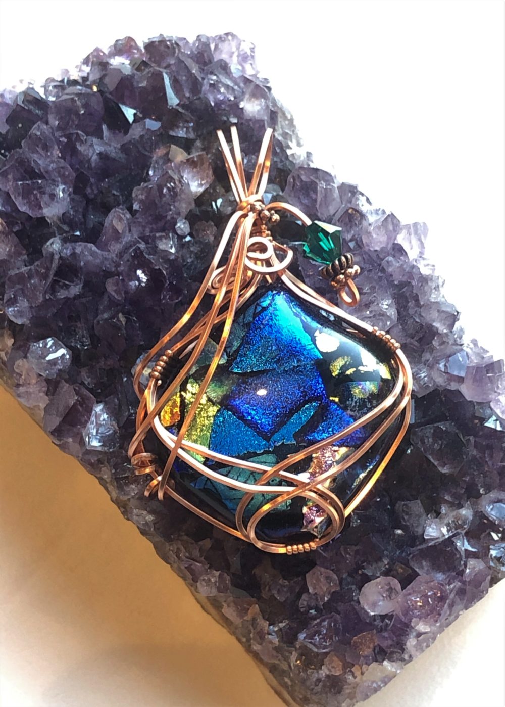 Copper wire wrapped Dichroic Glass pendant